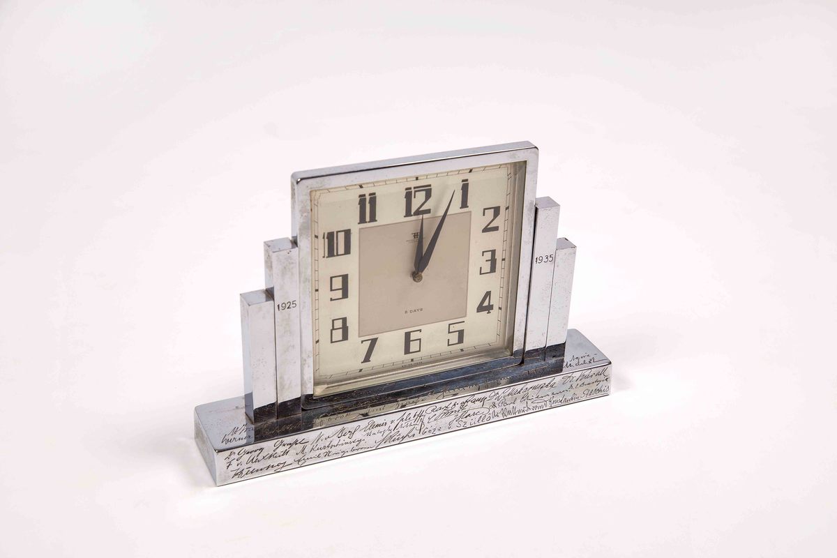 V obeležitev desetletnega obdobja predsednikovanja Kongresu evropskih narodnosti, so člani Kongresa Vilfanu podarili namizno uro z njihovimi podpisi. Ura je mehanska, z belo številčnico ter črnimi številkami in kazalci. Njeno ohišje je srebrne barve. Na levi in desni strani številčnice nosi letnici 1925 in 1935, kar označuje prvo leto delovanja Kongresa ter deseto obletnico. Podpisi članov so vgravirani na sprednji in zgornji strani njenega podstavka. Med njimi najdemo nekatere ključne osebnosti, kot so Vilfanov tesni sodelavec, zadolžen za področje informiranja in propagande ter predsednik goriškega društva Edinost in sodelavec v parlamentu Engelbert Besednjak, Ferdinand von Üxkull-Güldenband, sodelavec Engelberta Besednjaka na področju informiranja, ki je bil po Ammendejevi smrti imenovan za generalnega sekretarja kongresa, Paul Schiemman, predstavnik latvijske nemške manjšine in podpredsednik kongresa, Géza Szüllő, predstavnik madžarske manjšine v kongresu idr. Med njimi ni mogoče prepoznati podpisa Ammendeja, ki je preminil leto kasneje. Uro je muzeju skupaj s še drugimi predmeti podaril Vilfanov sin Joža.