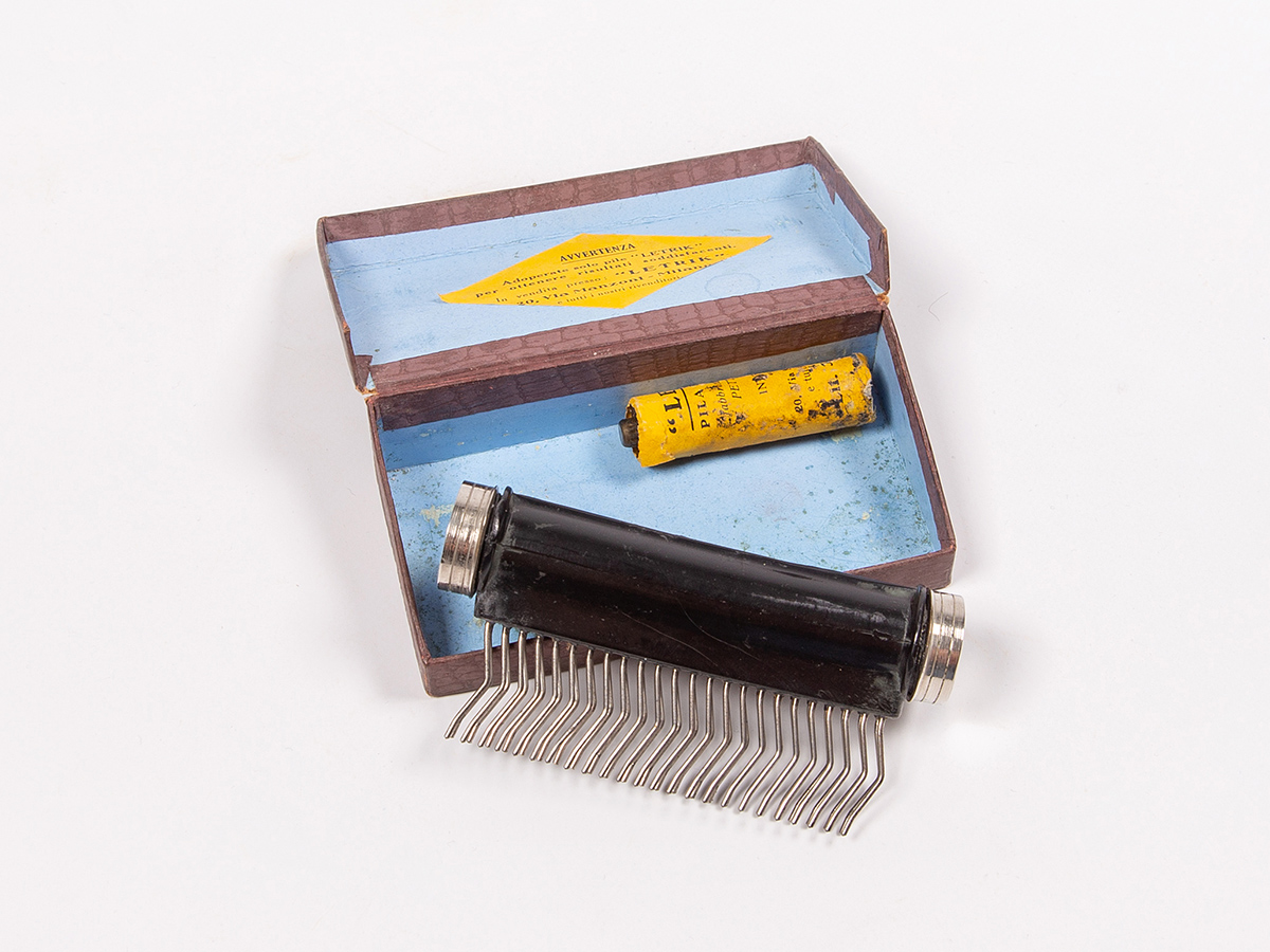 Že na prvi pogled je podobna glavniku, pa vendar dve vrsti skrbno zavitih žic niso kazale na to, da bi bil to običajen glavnik. Na predmetu, ki je bil lepo shranjen v originalni škatlici, je zapisano Letrik. S pomočjo podatkov, pridobljenih s spleta, smo našli tako podatek o času izdelave – to so 30. leta 20. stoletja, kakor tudi o tem, kako se je predmet uporabljal. Na spletu je namreč mogoče zaslediti vsaj dvoje originalnih oglasov, ki obenem delujejo kot navodila. Tako smo ugotovili, da gre za električni, pravzaprav baterijski kodralnik za lase.